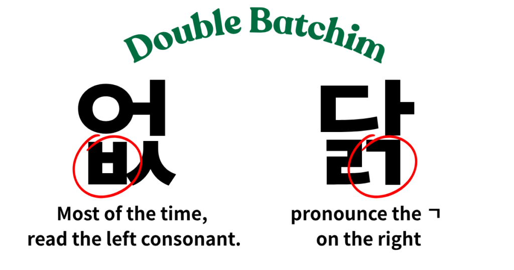 - Double batchim – two final consonants (e.g., 읽, 밟)